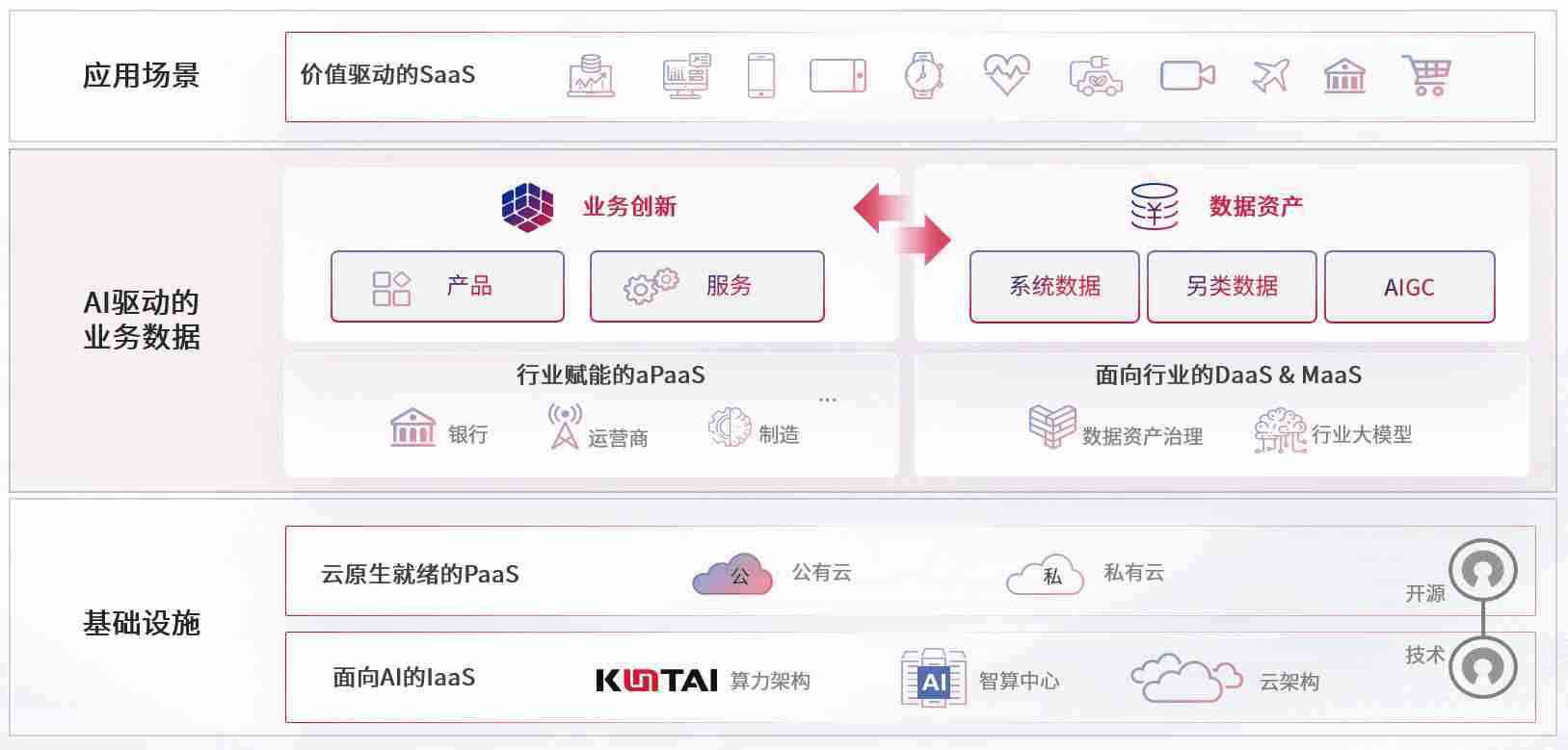 数字时代,,,,围绕企业数字化转型的关键要素,,KDPAY数码开创性的提出数云融合战略和技术体系框架,,着力在云原生、、、数字原生、、、、AI原生和信创产业上架构产品和服务能力,,,,为处在不同数字化转型阶段的快消零售、、、、汽车、、、、金融、、医疗、、、政企、、、教育、、运营商等行业客户提供泛在的敏捷IT能力和融合的数据驱动能力,,,构建跨界融合创新的数字业务场景和新业务模式,,,,助力企业级客户建立面向未来的核心能力和竞争优势,,全面推动社会的数字化、、、、智能化转型升级。。。。